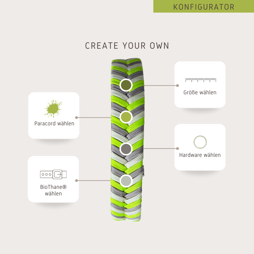Stell dir dein individuelles Biothane x Paracordhalsband Cross ganz nach deinem Geschmack zusammen. Wähle aus hochwertigen Biothane- und Paracord-Materialien sowie passender Hardware, um ein einzigartiges und langlebiges Halsband zu kreieren. So erhält dein Hund nicht nur ein stylisches Accessoire, sondern auch ein robustes und komfortables Begleiter für jeden Tag. Viel Freude beim Gestalten deines ganz persönlichen Lieblingsstücks!