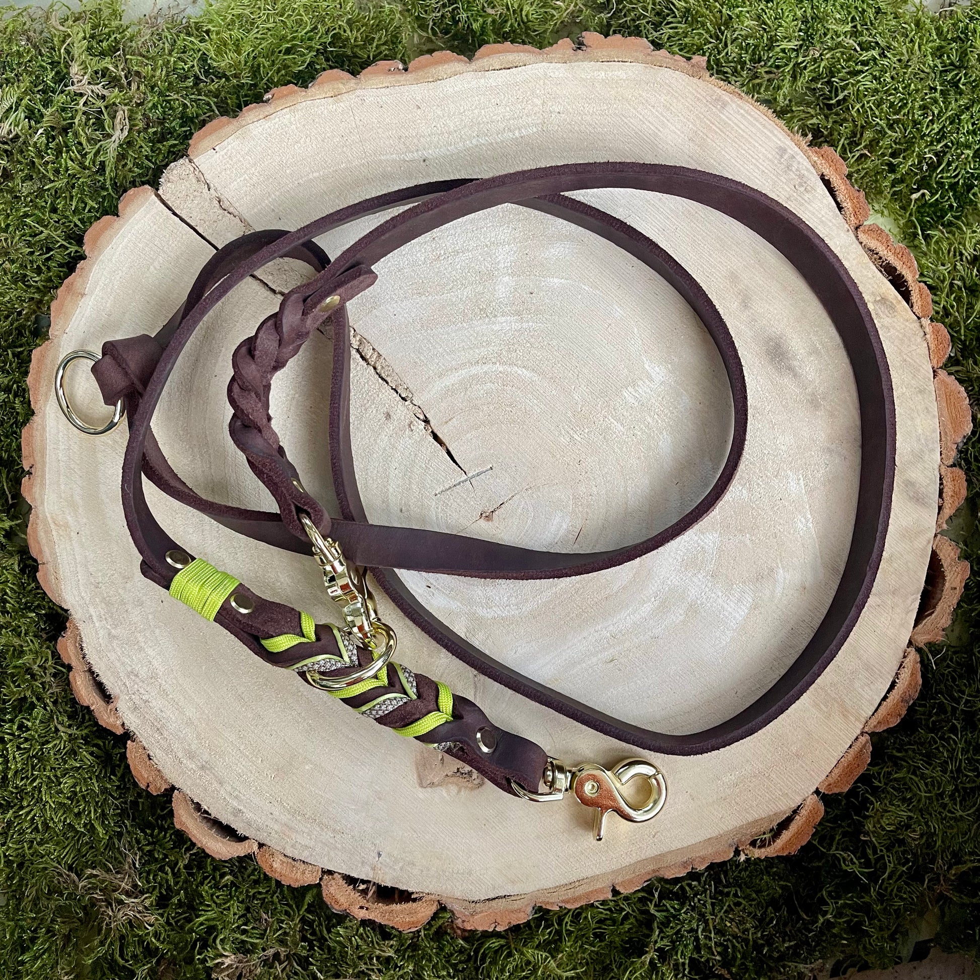 Wische die Leine regelmäßig mit einem feuchten Tuch ab, um Staub und Schmutz zu entfernen. Lass die Leine an der Luft trocknen, wenn sie nass geworden ist. Vermeide direkte Sonneneinstrahlung und heiße Heizquellen, da diese das Leder austrocknen und spröde machen können.