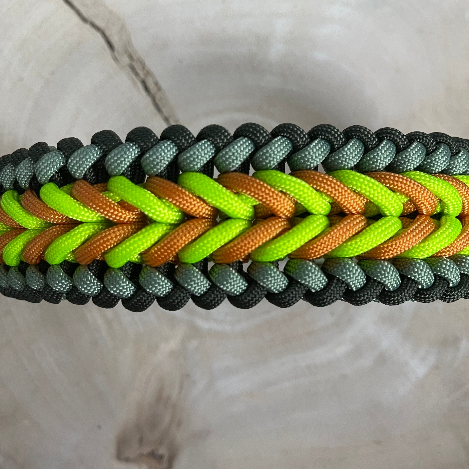 - Hohe Reißfestigkeit: Paracord besteht aus einem Kern aus mehreren miteinander verflochtenen Nylonfäden, umgeben von einer robusten Ummantelung. Dieses Material ist bekannt für seine außergewöhnliche Belastbarkeit und hält selbst starken Zugkräften stand, was es ideal für Hundeleinen macht.