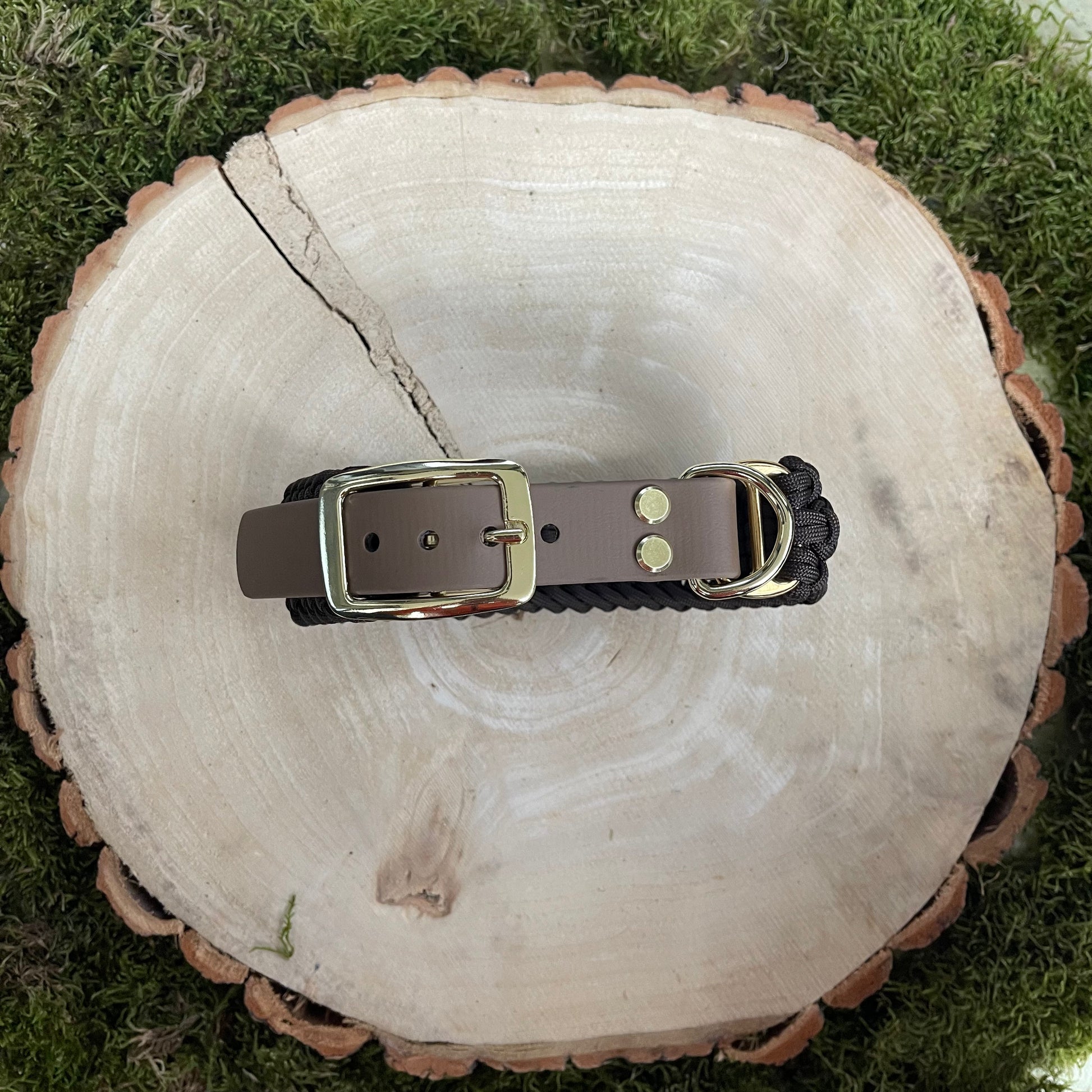 Unser Halsband erhaltet Ihr in 2 verschiedenen Breiten, mit Adapter oder Steckschnalle und mit goldener oder silberner Hardware.
