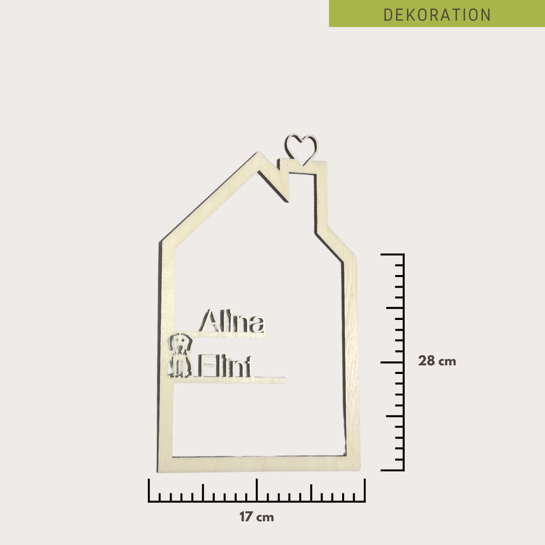 Dein Familienhaus aus Holz – handgefertigt und vollständig personalisiert! Hier vereinen sich alle, die zusammengehören: deine Familie und natürlich dein geliebter Hund. Jedes Häuschen wird individuell mit den Namen aller Haushaltsmitglieder gestaltet – Menschen und Vierbeiner gemeinsam verewigt. Ein wunderschönes Stück Handwerk, das die Liebe zu deiner Familie und deinem Hund widerspiegelt. Das perfekte Geschenk für jeden Hundeliebhaber, der seine Fellnase als vollwertiges Familienmitglied sieht. Einzigartig, persönlich, unvergesslich. Das Haus hat auf der Rückseite doppelseitiges Klebeband zum befestigen.
